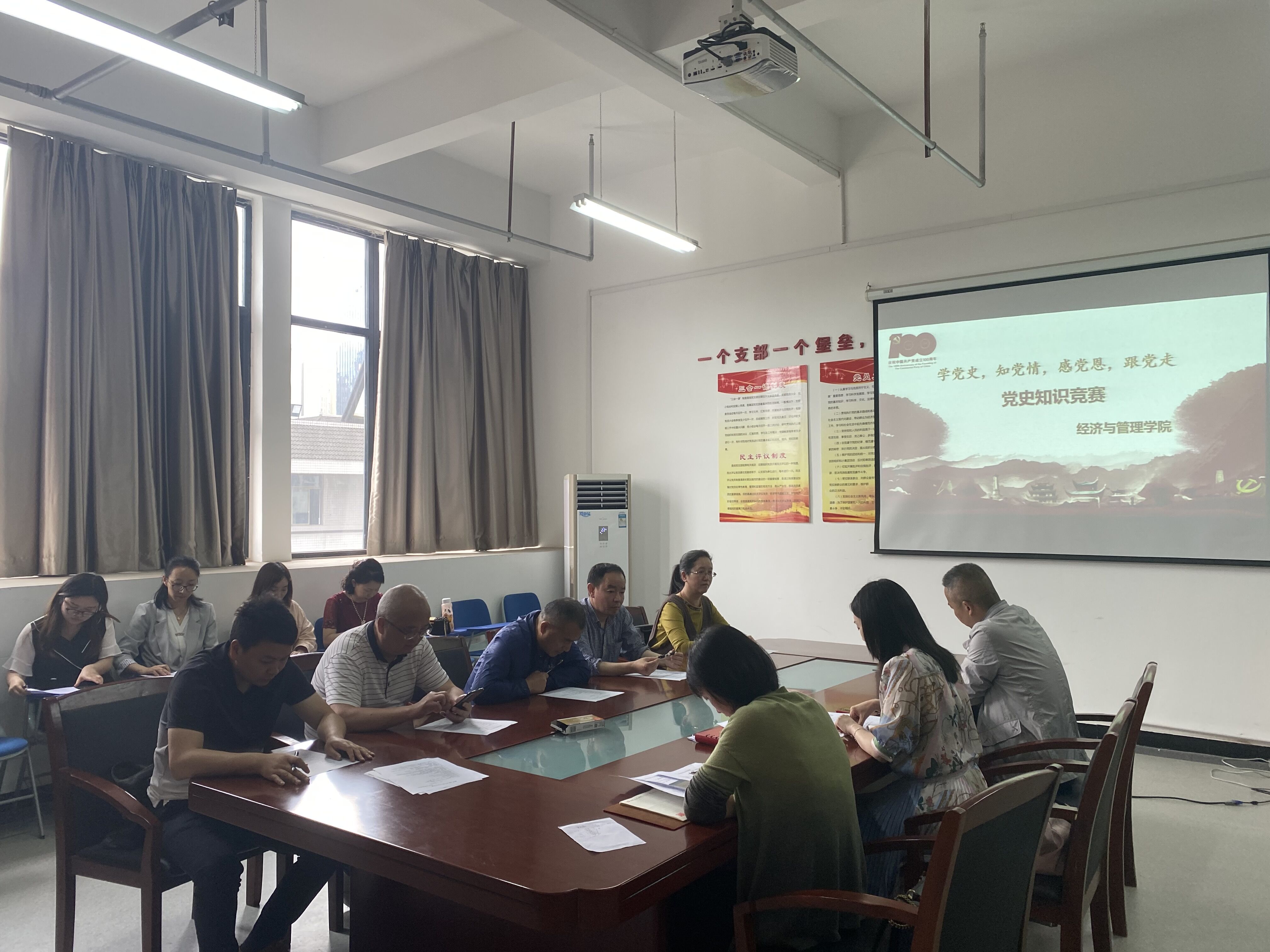 为庆祝中国共产党建党100周年,深入推进党史学习教育,引导党员教师更好地学史明理、学史增信、学史崇德、学史力行,5月19日下午304永利集团登录入口直属党支部在青年路校区培训楼304举办了“学党史、知党情、感党恩、跟党走”党史知识竞赛。活动由党支部书记高运荣主持,党员同志及全体教职工参加活动。