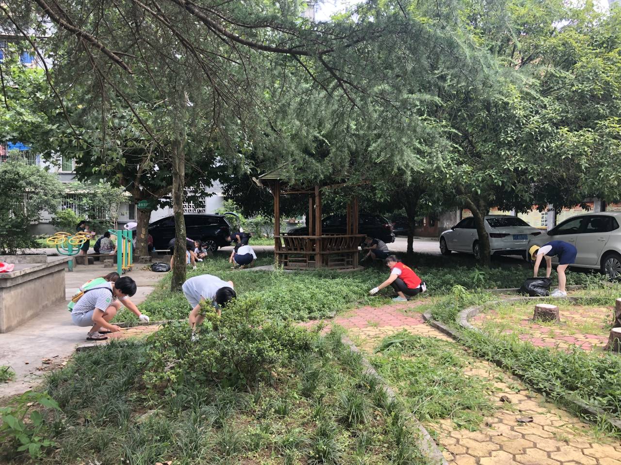 在与爱国苑小区相关负责人对接情况后,志愿者们积极开展对小区绿化带杂草进行清理的志愿服务活动。志愿者们顶着烈日,充分发扬“不怕苦、不怕累”的精神,以饱满的精神对绿化带的杂草实行“斩草除根”式的大清理。在大家齐心协力之下,小区绿化带的杂草被清除干净,让小区居民远离杂草滋生带来的蚊虫侵扰。同时还向爱国苑社区发放关于2020年国务院、四川省、雅安市的政府工作报告宣传资料以及未成年心理成长指导宣传资料。