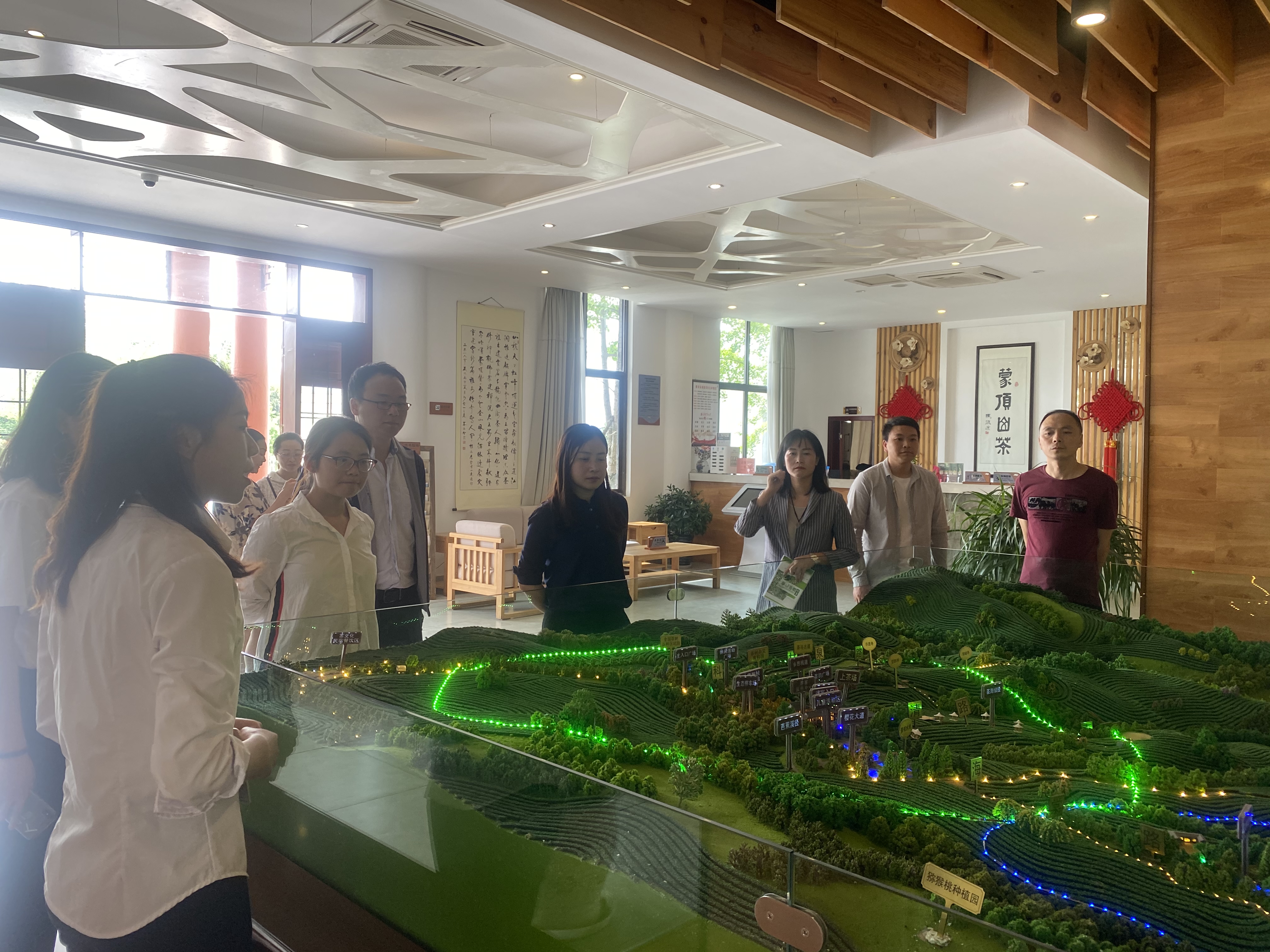 下午,对牛碾坪万亩观光茶园、蒙顶山茶史博物馆以及蒙顶山生态旅游康养园区进行了调研。实地调研结束后,在名山区人民政府指挥中心开展了座谈会,会议由宋希霖局长主持。会议开始,李柚谈了今天调研的感受,并对茶产业公司的背景进行了详细的介绍。随后,与参会各单位对茶产业公司筹建涉及的校企共育、人才培养、社会培训和科学研究等方面的内容进行了讨论,共同探索创新人才培养的新模式。会议最后,宋希霖表示名山茶产业在寻求转型升级的道路上需要雅职院助推发展,李柚和任敏也对各个单位对于茶产业公司筹建提出的意见和建议表达了感谢。