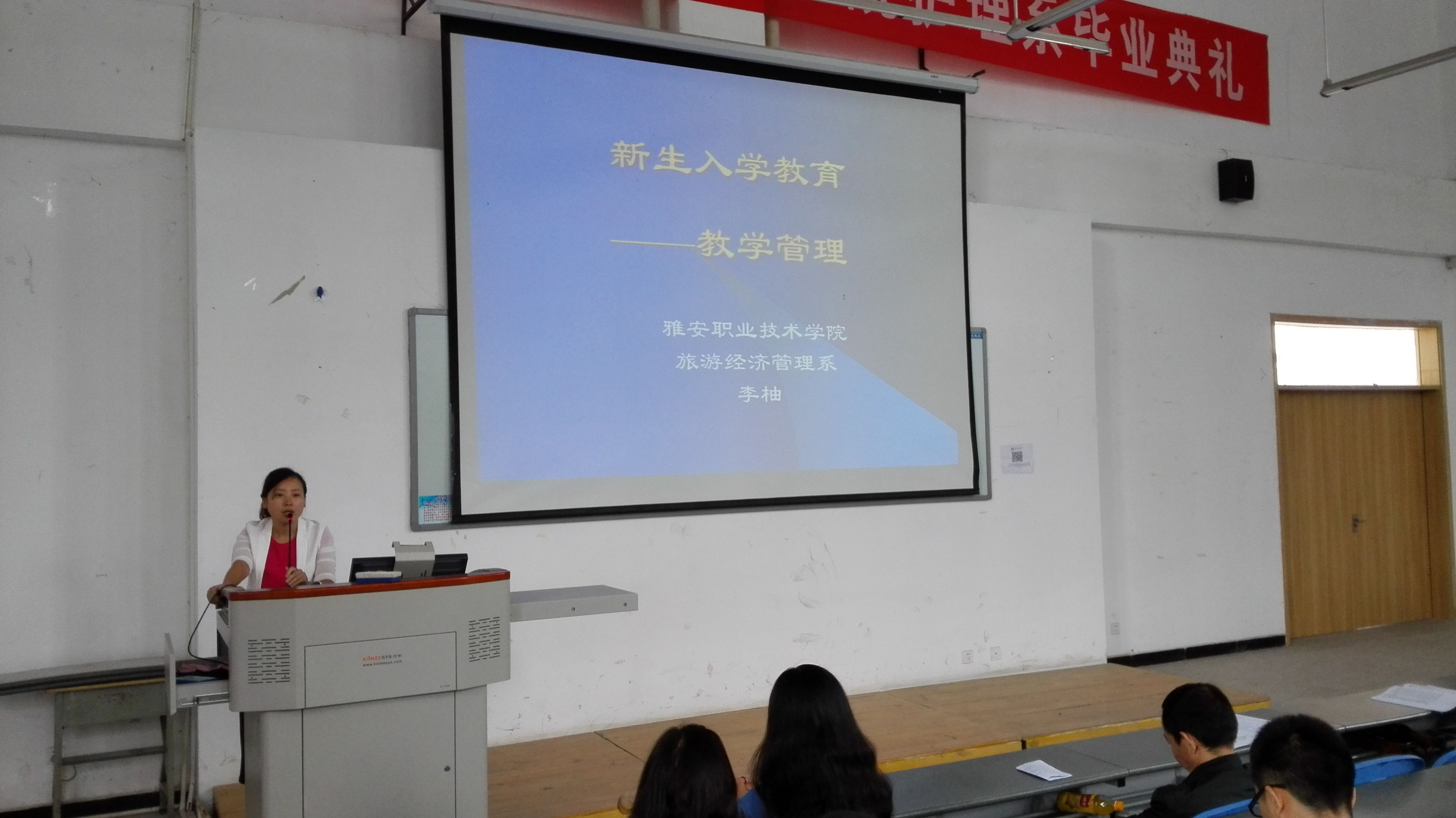 一、系主任李霓代表全系师生向新同学致欢迎词。在讲话中,李主任为同学们介绍了雅安的风土人情,公司的发展历史,为同学们展示了雅职院的美好画卷,也提出了殷切期望。“有温度、懂情趣、会思考”是李霓主任对同学们的赠言。