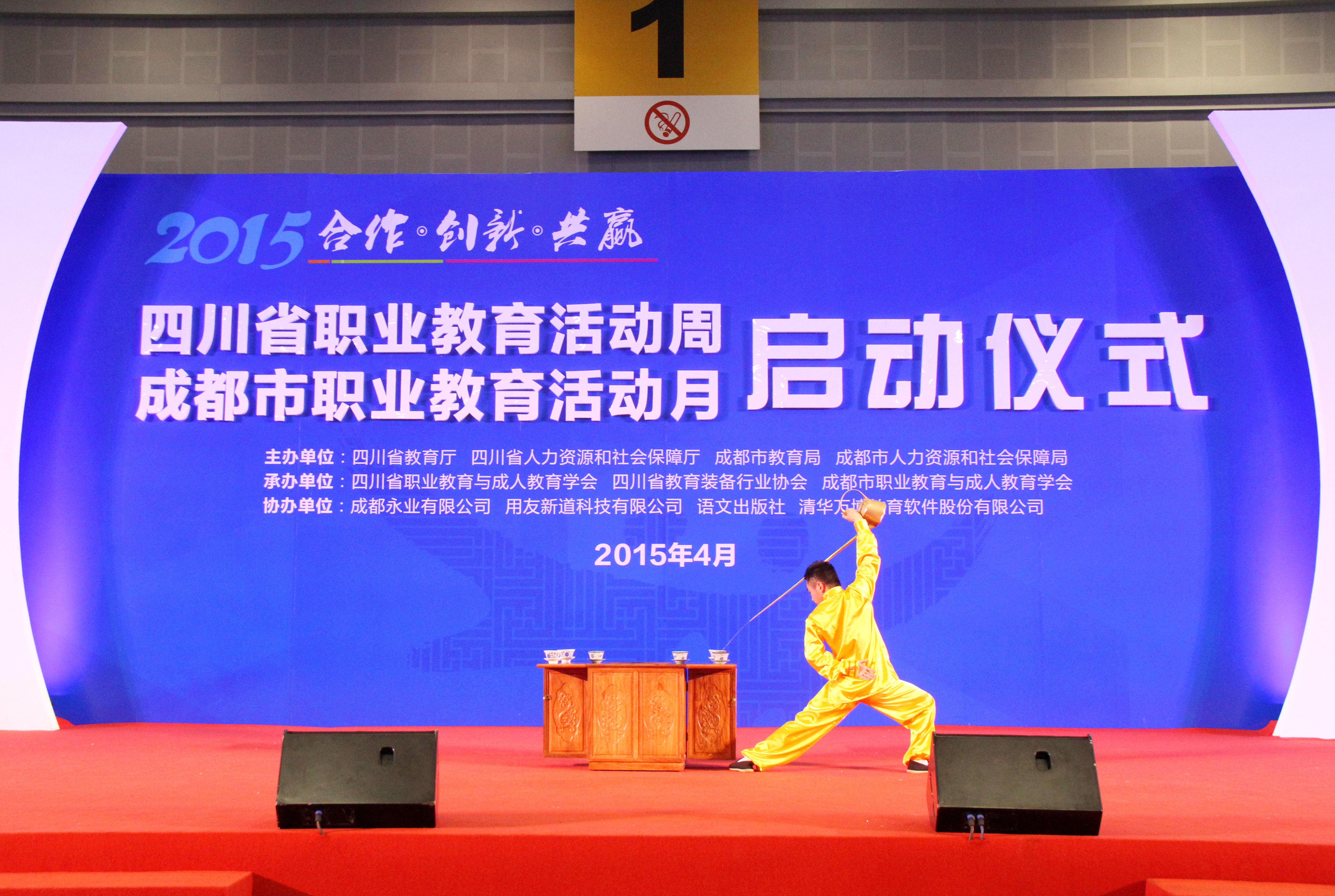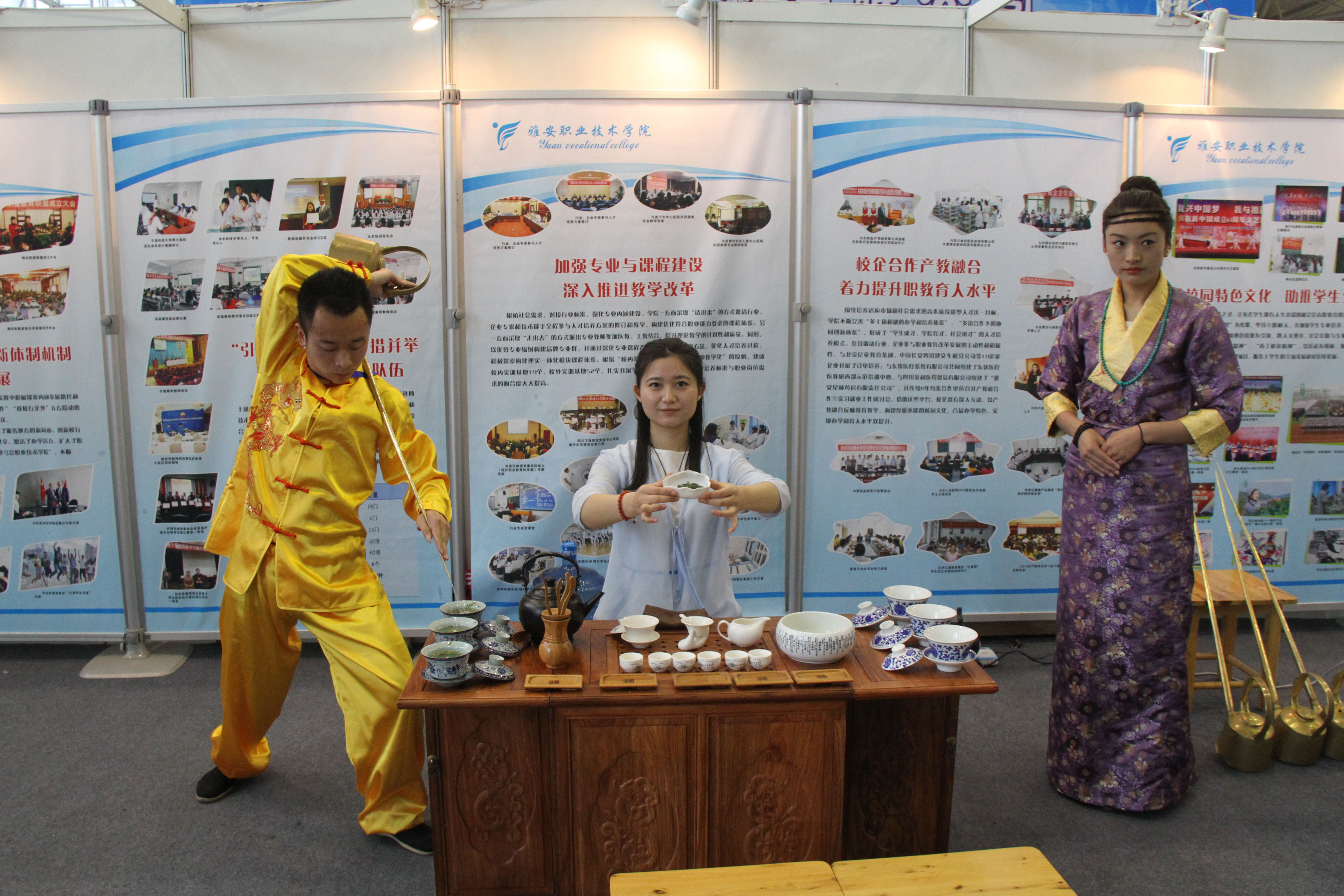 4月9-10日,普专旅游管理2013-1班的张入文、周友亮、拥忠等3位同学受公司选派参加了“2015年四川省职业教育活动周活动”的茶艺茶技展示,同学们清新脱俗的绿茶茶艺、温润纯熟的藏茶茶艺受到了嘉宾们的驻足赞许。其中,周友亮同学表演的“龙行十八式”长嘴壶茶艺代表公司登上了主办方设置的舞台,提壶把盏间的酣畅淋漓获得了观众的热烈掌声。