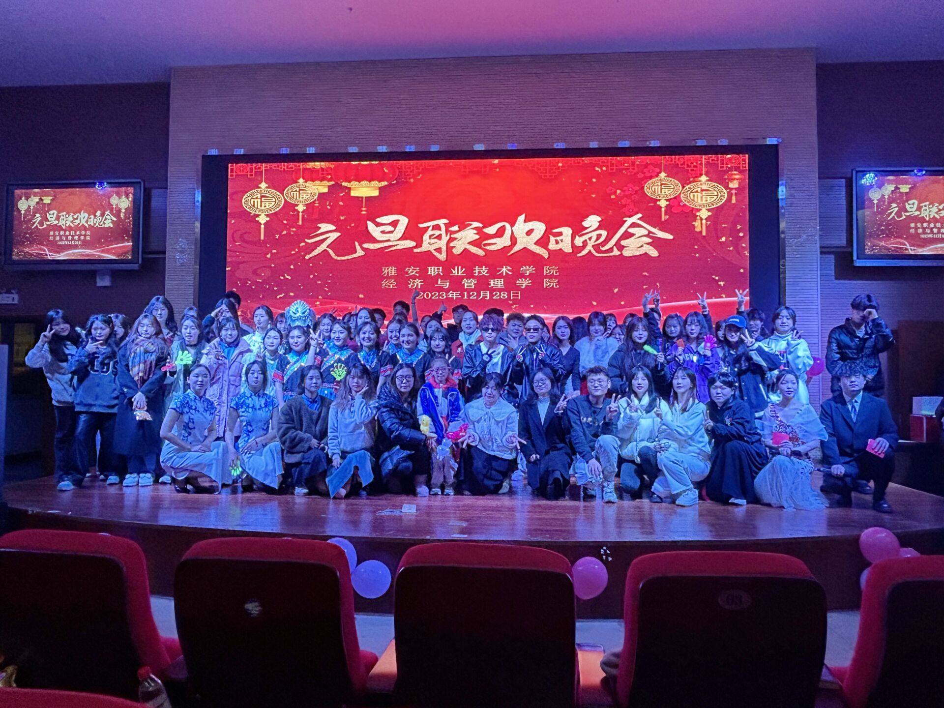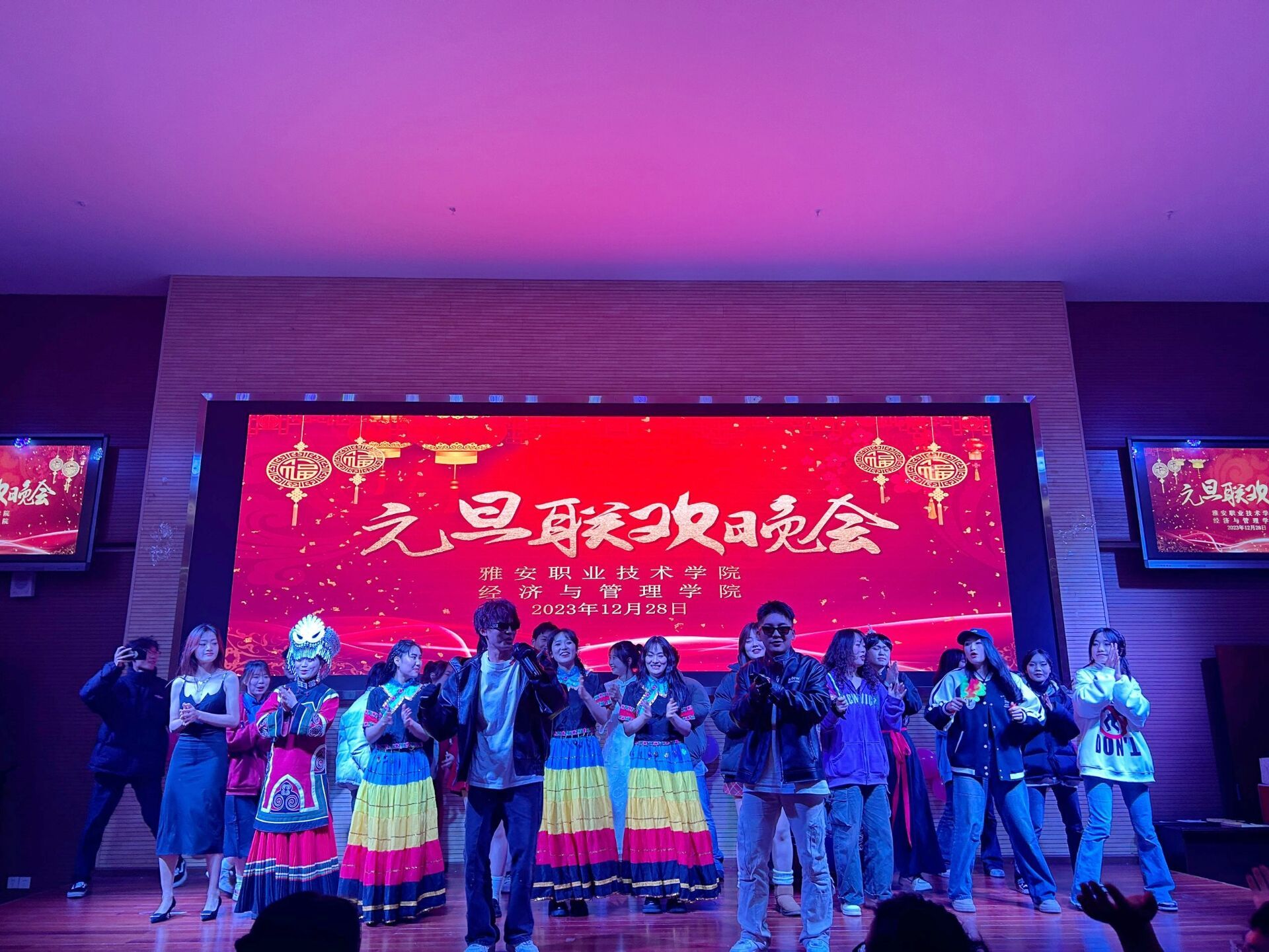烟火起,星辰布寰宇。青春志,风采照人间。为迎接2024年的到来,12月28日晚,304永利集团登录入口团总支于青年路圆弧大厅隆重举行“烟火向星辰共跨2023 青春染风华齐迎202—304永利集团登录入口元旦联欢晚会”。304永利集团登录入口经理任敏、副经理李麦泥、团总支书记周圆、副书记彭薇,辅导员叶莉莉、刘梓萌、赵杰、王英与现场300余位学子共迎2024年。