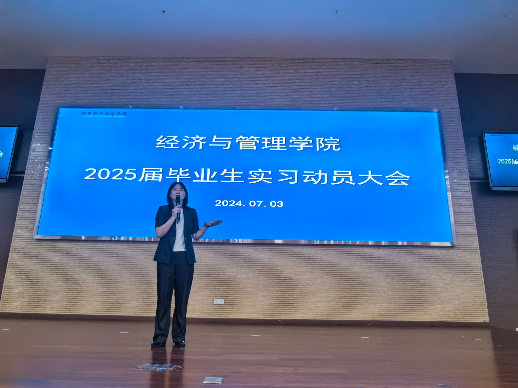 会上,李麦泥从毕业实习的目的、时长、要求、成绩评定与考核等方面,对即将奔赴到岗的同学们进行了系统培训,以确保同学们能顺利完成专业实习。