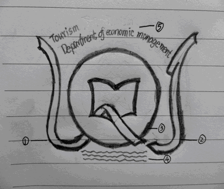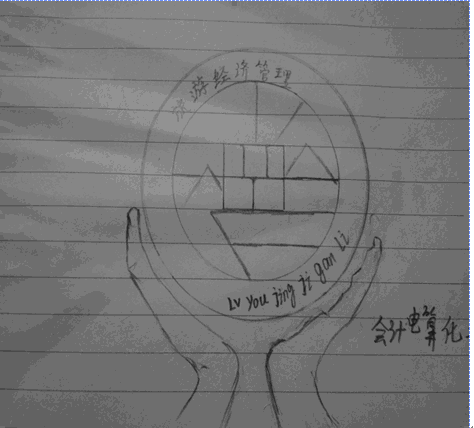 设计理念:以古代钱币做为主要,代表经济以五个小人牵手和3座小山代表旅游。希望旅游经济管理系大家一起牵手共筑更好的未来。