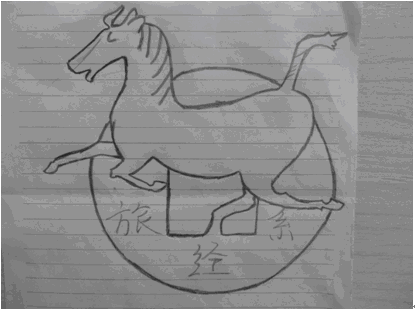 设计理念:财务和会计与金钱有关,而古铜钱最能代表金钱这一类,而旅游方面以“马踏飞燕“著名,作为一个旅游的重要标志。故大胆以铜钱和马踏飞燕来取材,两者相结合。