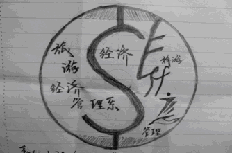 设计理念:整体在一个大大的圆圈里面,代表了整个旅经系,一个整体象征着一个不同专业组成的一个圆,也代表着这三个不同专业在共同的圆中蒸蒸日上,而几个大字也说明这个系的名称。中间是个大大的S符号,代表钱的意思,也同时代表着旅游经济管理系的经济符号。右上角是一个关于旅游的图标,两个人手拉手的开启自己的旅途,象征着天天向上的意义,右下角是一个管理的图标,由下面的一只手和上面的人形组成,突显管理的意义。